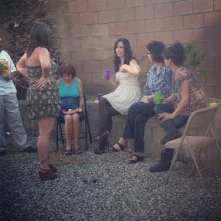 Most of the party, minus photographer Missy and a few people who had to leave early. We all look like demons, lmao.
